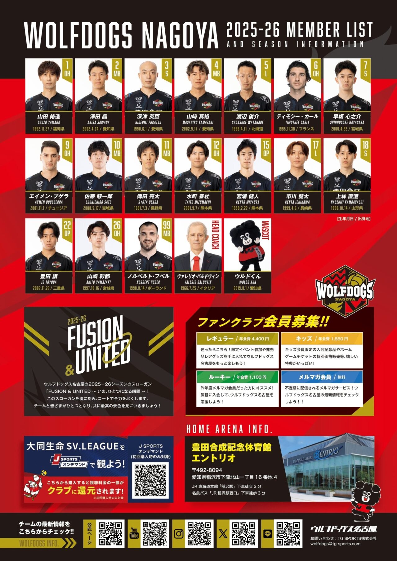 大同生命SVリーグ ウルフドッグス名古屋 2025-26 シーズンが、いよいよ2025年10月25日(土)に開幕します!!