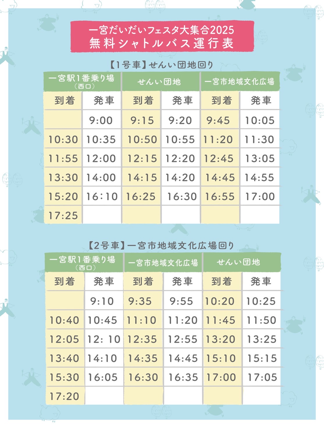 無料シャトルバス運行表の情報はこちら。