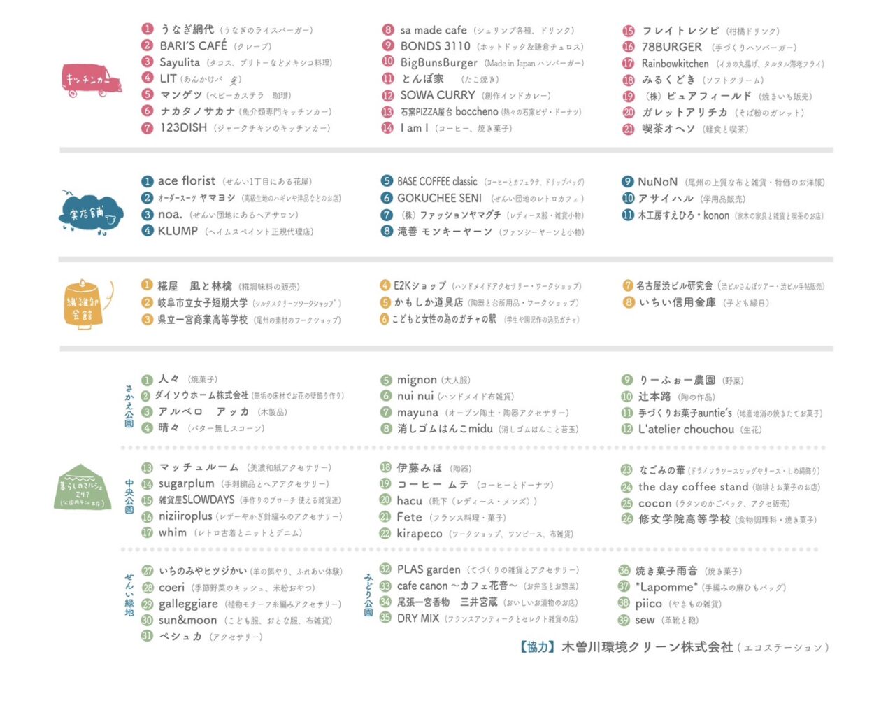 27.いちのみやヒツジかい(羊の餌やり、ふれあい体験) 28.coeri (季節野菜のキッシュ、米粉おやつ)