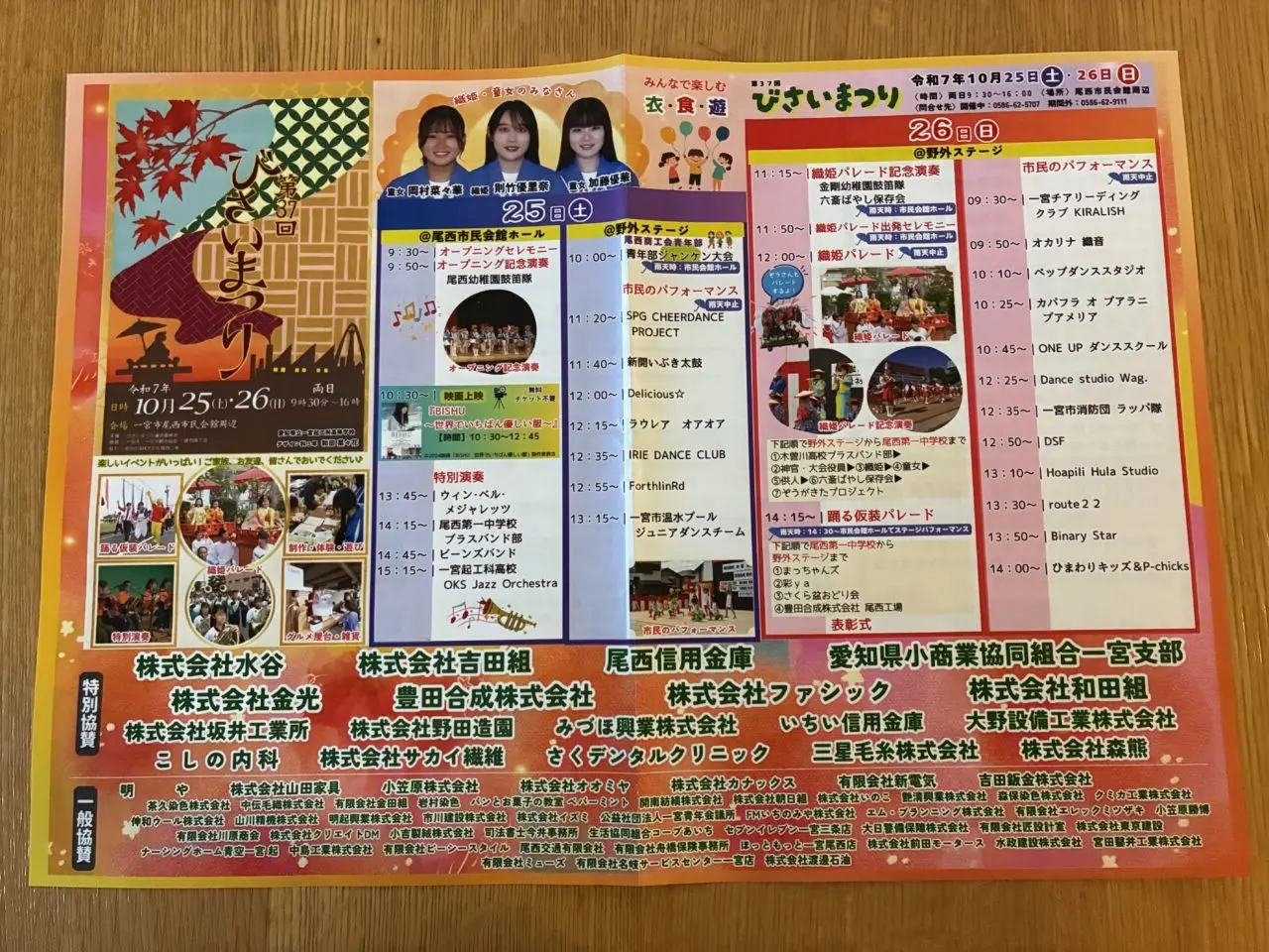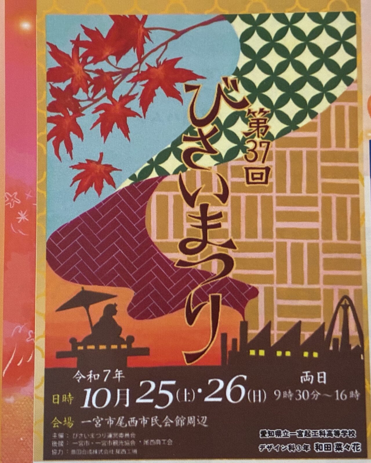 「みんなで楽しむ衣・食・遊」がテーマの第37回びさいまつりが、2025年10月25日(土)・26日(日)に一宮市尾西市民会館周辺で開催されます!