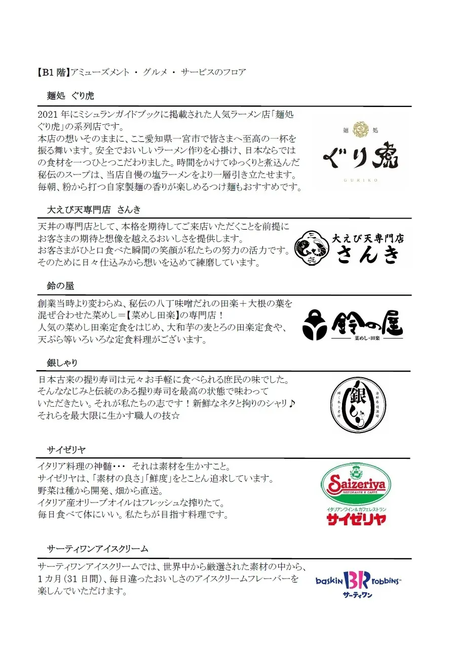 【B1F】 アミューズメント ・ グルメ ・ サービス