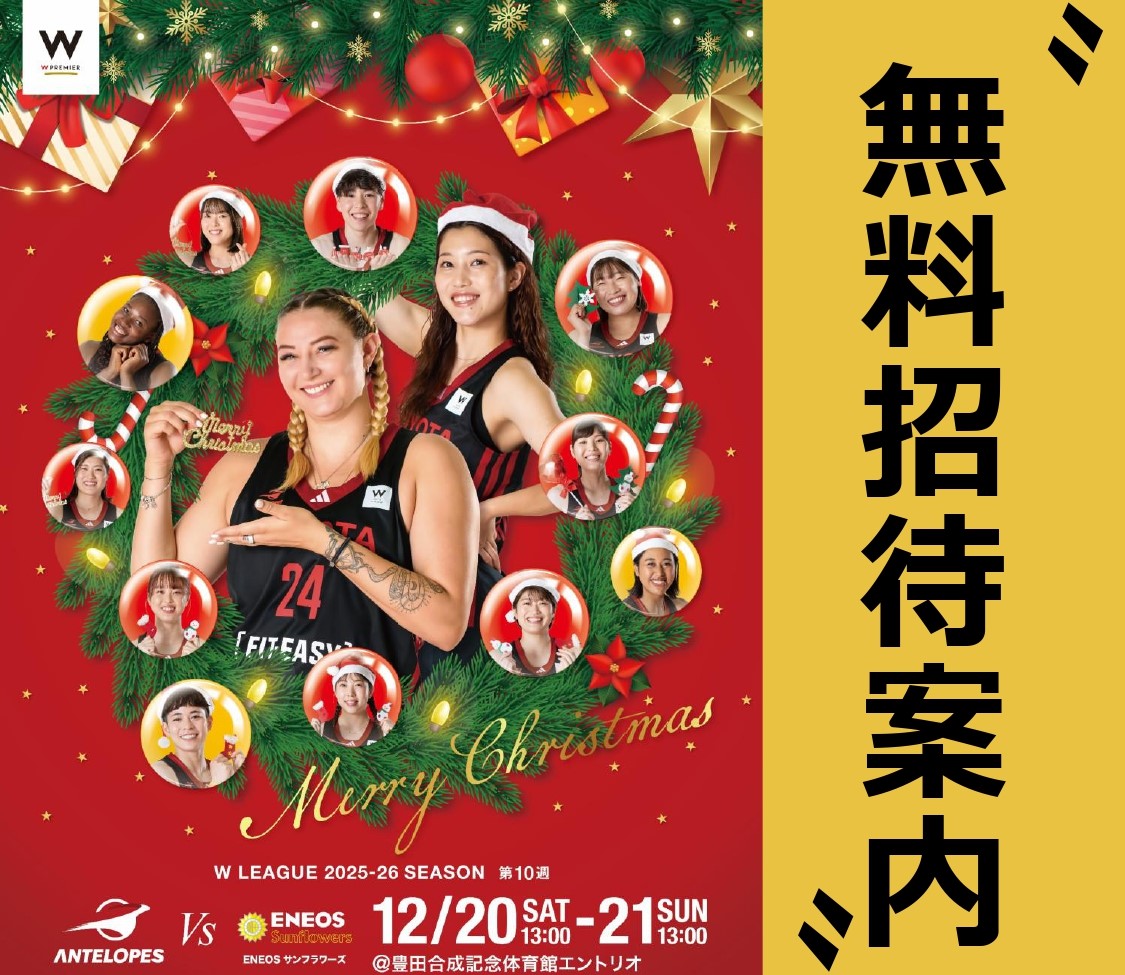 【一宮市周辺】12/20(土)21(日)エントリオにてWリーグ アンテロープス(バスケットボール)稲沢大会を無料ご招待!クリスマスをテーマに会場装飾や演出を盛り上げます!