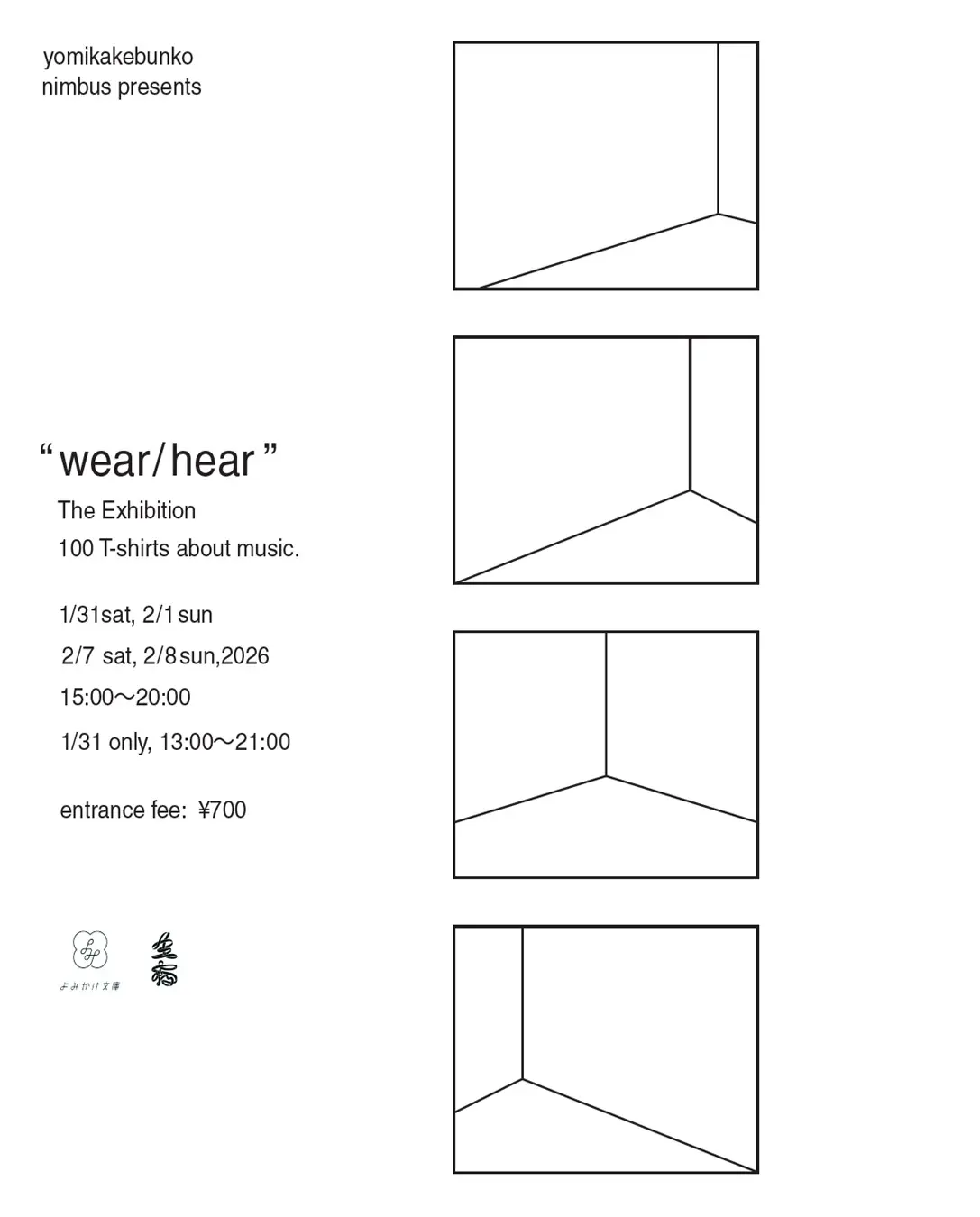 2026年1月31日、2月1、7、8日の各土日、よみかけ文庫内のギャラリー生存にて、音楽Tシャツを展示するイベント「wear/hear」が開催されます!