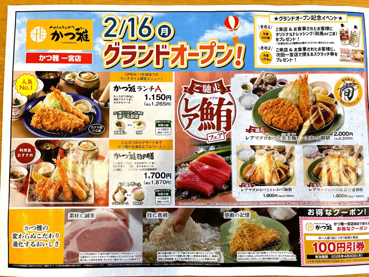 新しくオープンした「かつ雅 一宮店」が、これからどのようなお店になっていくのか楽しみですね!