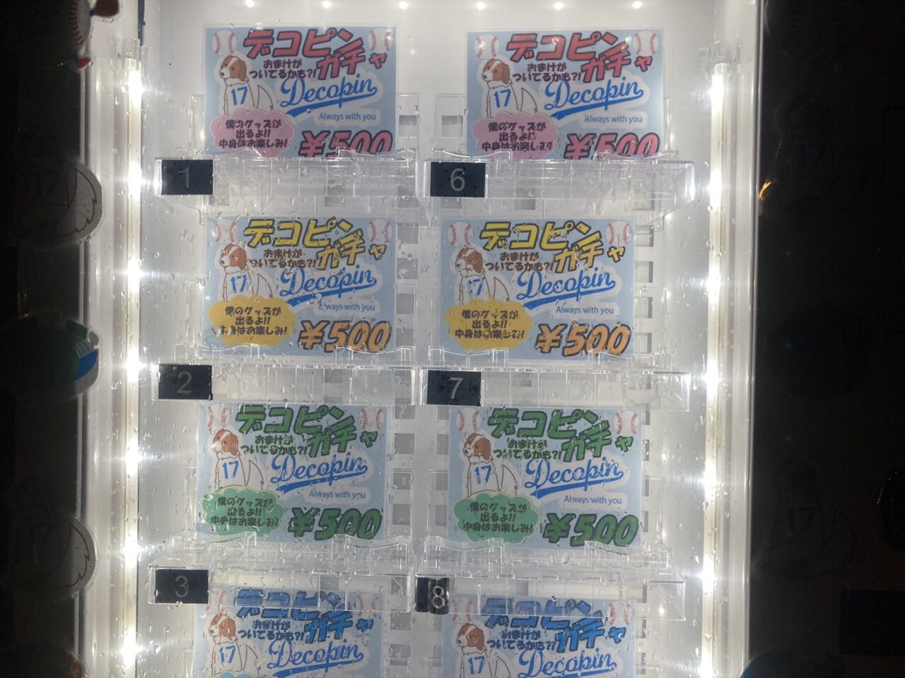 「平安にあるビジネスセンターの横にある自動販売機でデコピンガチャが販売されてました。」