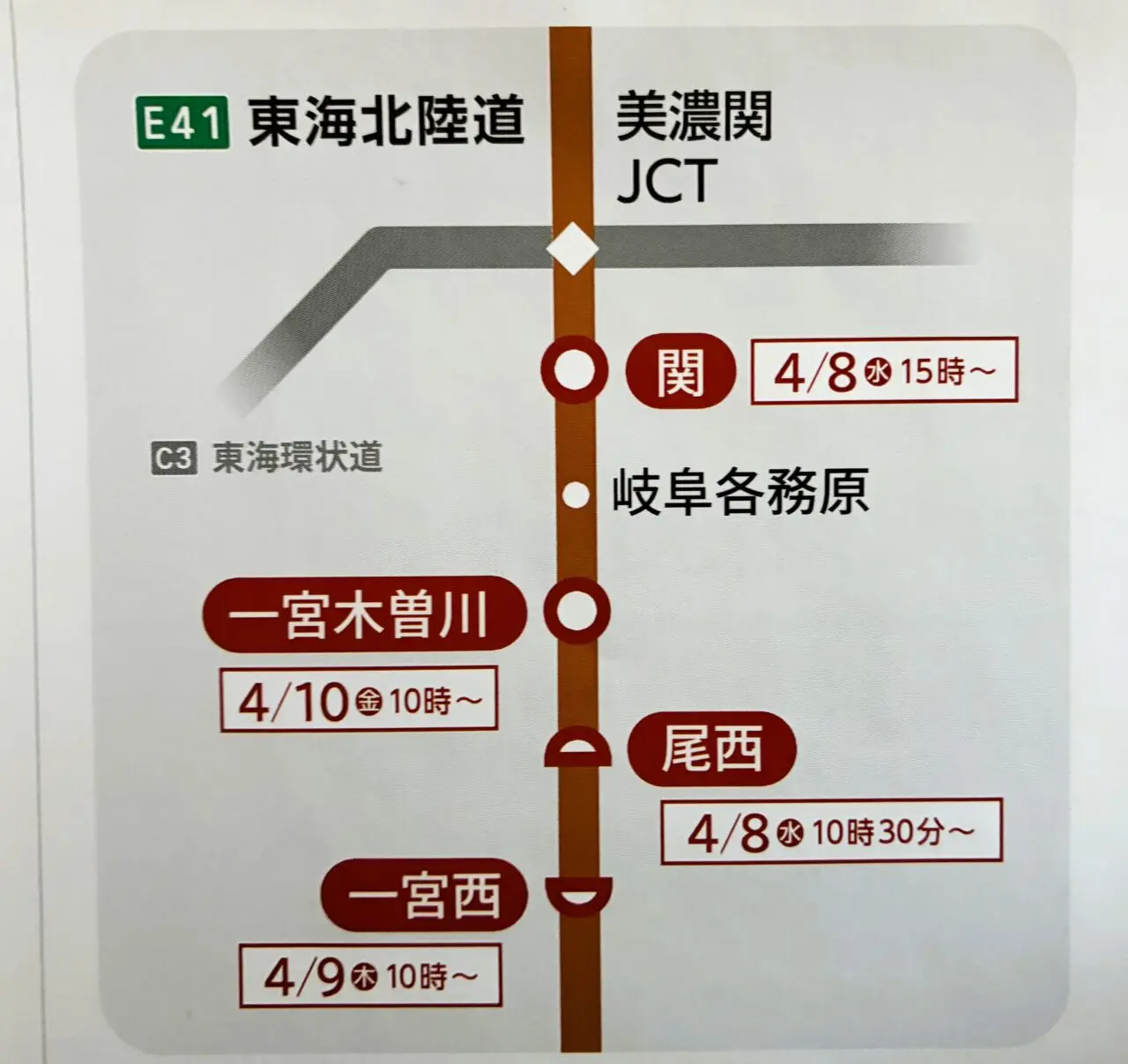 チラシによると、対象となるのは関IC〜一宮木曽川IC付近の区間。