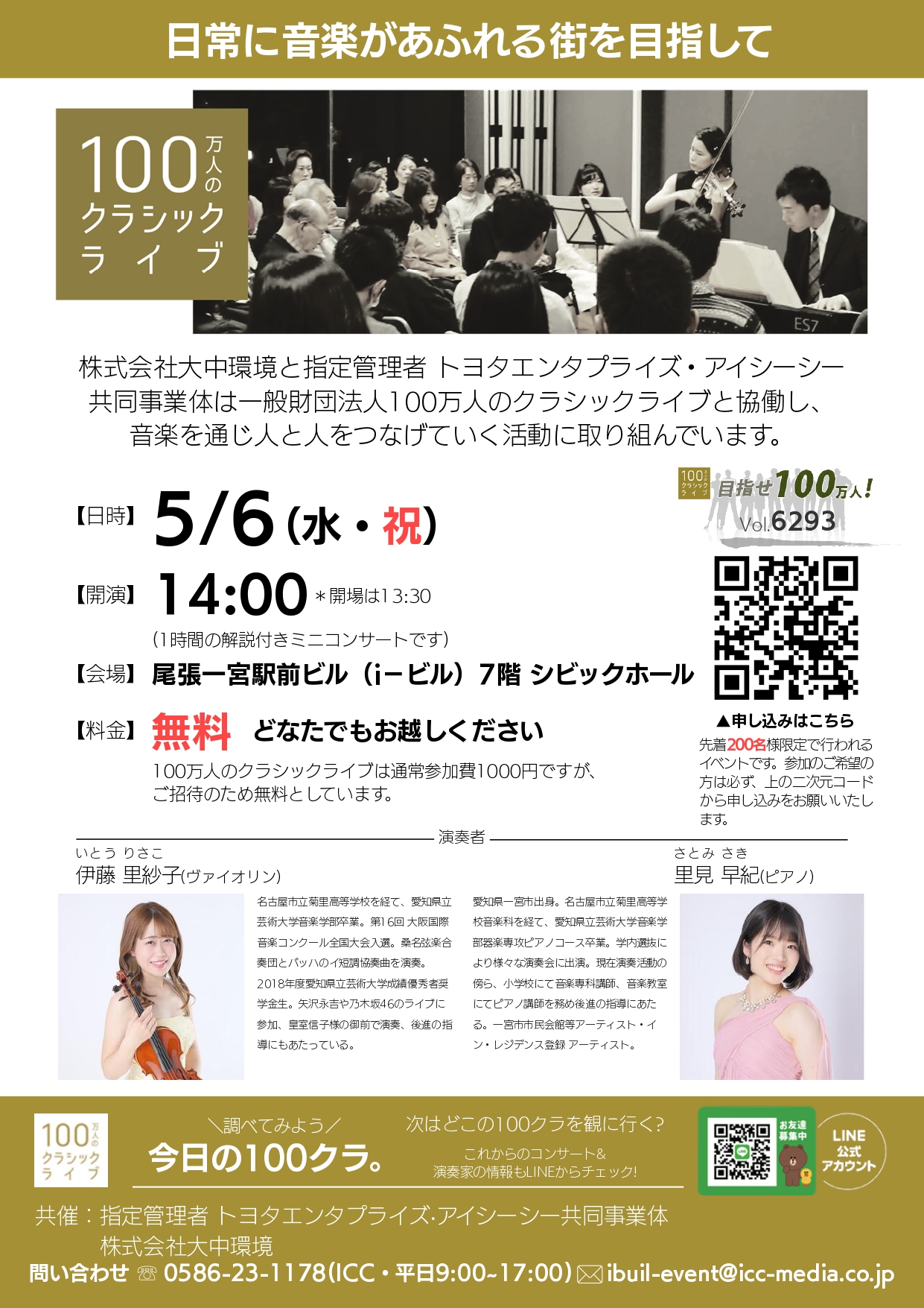 2026年5月6日(水・祝)、尾張一宮駅前ビル(i-ビル)にて「100万人のクラシックライブ」が開催されます!